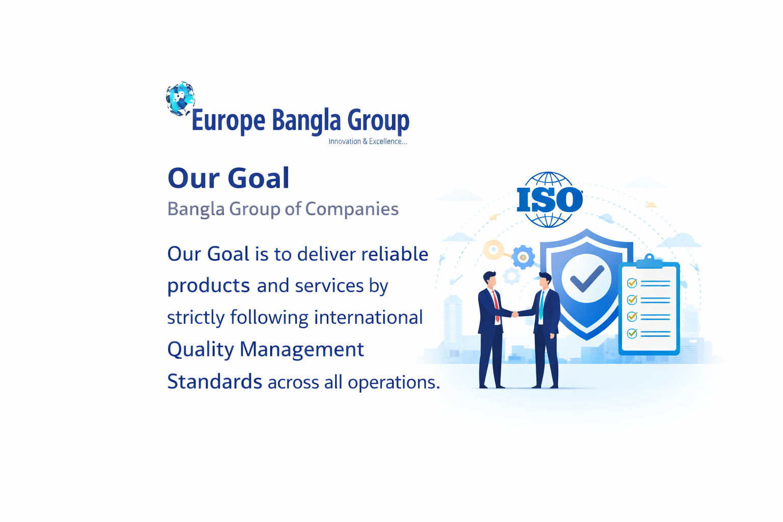 Our Goal is to deliver reliable products and services by strictly following international Quality Management Standards across all operations.