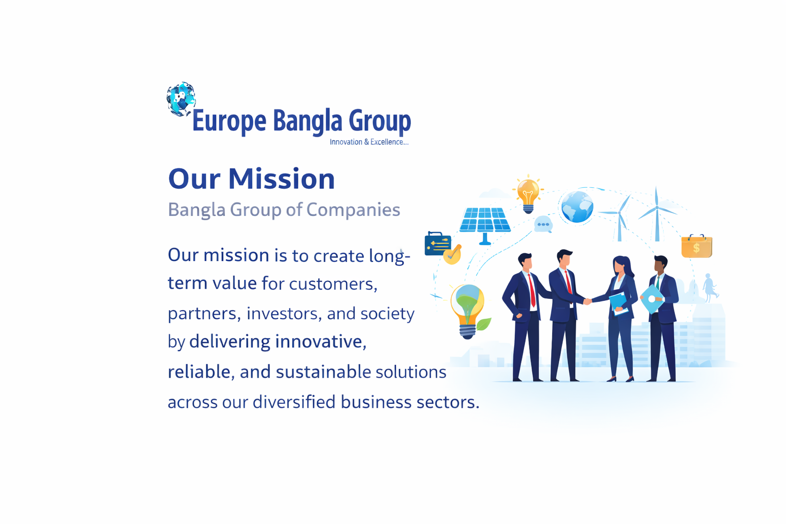 Our mission is to create long-term value for customers, partners, investors, and society by delivering innovative, reliable, and sustainable solutions across our diversified business sectors.